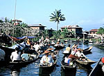 Příjezd do Ywamy je překrásný navzdory výše popsanému blázinci a po frekventovaných ranních hodinách (až do pozdního odpoledne) je tu moc pěkně. Nad jezerem je několik restaurací, kde si můžete dát lehký oběd v bamarském nebo čínském stylu. Z Nyaungshwe jezdí do vesnice Ywama pravidelně lodě. |