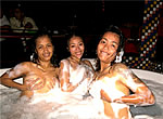 Specifické zařízení. Většinou umístěné ve velkém hotelu nebo ve zvláštní budově. Po příchodu se ocitnete v hale s prosklenou stěnou, za kterou sedí na stupňovitém podiu několik desítek očíslovaných dívek ve večerních šatech. Usmívají se na Vás a je jen na Vás, kterou si vyberete. Je to trošku loterie, ale v těchto podnicích zaměstnávají profesionálky, které nezklamou a k dispozici je při výběru personál, který Vám ochotně doporučí dívku přesně podle Vašich požadavků. Je to na dvě hodiny a platí se předem. Vyjedete s dívkou na pokoj a personál se přijde zeptat co si objednáte k pití. Neostýchejte se a něco si dejte, času dost. Součástí pokoje je velká vana, ve které si Vás dívka pečlivě vykoupe a obvykle také plastikové nafukovací lehátko. To dívka ve chvilce pokryje voňavou pěnou, položí si Vás na něj a začne Vás masírovat svým tělem - všemi jeho částmi! Obzvlášť dovedné dívky okolo Vás kloužou jako heboučký úhoř... Pokud "bez ztráty květinky" přežijete všechny tyto procedury, zbývá ještě velká postel a tam je to již podle Vašeho uvážení a obliby...