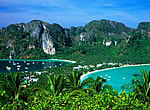 Ko Phi Phi - je bez přehánění perlou Andamanského moře. Souostroví je součástí stejnojmenného národního parku. Ostrovy jsou známé krásnými útesy a skalními vápencovými útvary. Milovníci moře a potápění zde najdou křišťálově čisté moře a korálové útesy s obrovským množstvím živočichů. Hlavní a největší je ostrov Phi Phi Don, jehož dvě části jsou spojeny úzkou mořskou úžinou. Díky expandujícímu turismu tu vyrostlo mnoho bungalovů, hotelů, kaváren, restaurací a obchůdků. Avšak i dnes naleznete na ostrově neporušenou přírodu a můžete se pokochat krásným výhledem ze dvou vrcholů ostrova. Menší ostrov Phi Phi Ley je neobydlený a "nezkažený" a je oblíbeným cílem výletů, jejichž vrcholem je návštěva pláže Ao Maya proslavené filmem Pláž. |
