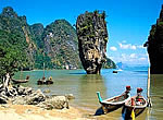 Phuket je největší thajský ostrov (550 km2) a zároveň jediný ostrov, který je také provincií (nejbohatší v zemi). S pevninou je spojen slavným mostem milenců jménem "saphán Sarasim". Býval regionální centrálou s bohatou a barvitou historií. 70% povrchu Phuketu je hornatých; západní pohoří prochází ze severu na jih (ostrov je 48 km dlouhý). Zbývajících 30% ostrova, hlavně ve středu a na jihu, jsou roviny. Je jednou z nejnavštěvovanějších rekreačních oblastí v jihovýchodní Asii (více než 1 mil./rok). Ostrov trpící náporem turistů si nadále zachovává azurové moře a bělostný písek. Dokonalá infrastruktura a nepřeberné množství atrakcí uspokojí i nejnáročnější klientelu. |