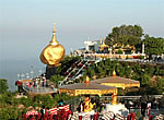 Snídaně. Transfer po silnici do Kyaikhtiyo (160 km). Zastávka v městě Bago a prohlídka více než tisíc let staré Shwemawdaw Pagody. Její vrcholek dosahuje o 14 m výše než slavná Shwedagon Paya v Yangonu. Oběd v místní restauraci po cestě. Program pokračuje pozdě odpoledne návštěvou Zlaté skály - jednoho z nejuctívanějších náboženských míst v Myanmaru. Je to obrovský pozlacený viklan na strmém útesu. Jeho dosažení není ale jednoduché - nejprve 11 km serpentinami v přeplněném náklaďáku a pak 4 km pěšky strmou cestou (převýšení 500 m). Pro ty, kteří nemají dostatečnou fyzickou kondici nebo ze zdravotních důvodů nemohou jít po svých, jsou zde připravena plátěná nosítka, v nichž vás mohou 4 nosiči vynést vzhůru za cca 20,- USD (cena se mění podle váhy pasažéra!). Pozorování západu slunce. Večeře. Přenocování Kyaikhtiyo na vrcholu hory.