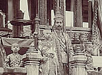 jest despotická, v čele jejím stojí dva králové, z nichž prvý je pravý panovník, druhý, od prvního jmenovaný, vůdce vojska. První král jest neobmezený panovník nad životem i statkem svých poddaných, v jeho přítomnosti musí všickni ležeti na zemi. Odznakem důstojenství jeho jest savetrachjat, t.j. 7-9 pyramidálně nad sebe sestavených stínítek. Jméno králova jaké se při korunování od kněží ustanoví, nesmí nikdy býti vysloveno. Titul králův jest "posvátný pán hlav, majitel všeho". Králova manželka musí býti z domácí královské krve, a přísně jest odlučována ode všeho občování s osobami nižšího řádu. Ona nikdy nemůže býti vladařkou a nesmí se míchati do politiky. Ona má zvláštní svůj dvůr a životní stráž ozbrojených žen. Druhý král má též svůj zvláštní dvůr a zvláštní komonstvo. Pravý jeho poměr k prvnímu králi není dosavad úplně vyjasněn. Trůn jest dědičný, ale nikoliv po prvorozenství, nýbrž uděluje se se svolením princů a velmožů kterémukoliv synu královny. Vysoké úřednictvo státní dělí se na pět stupňů. Úřady jsou větším dílem dědičné, každoročně dvakrát se obnovuje úřední přísaha. Spravedlnost uděluje se dle obšírného zákonníka, jenž dělí se na zákonník občanský, obchodní a trestní. Mimo trest na hrdle a trest žaláře jsou v obyčeji také tresty potupující, jako např. krájení píce pro slony, vodění zločince spoutaného po ulicích a vyvolávání jeho přečinu. Péče o veřejnou bezpečnost jest malá, za spáchané zločiny ručí vždy celý okršlek. Roční příjmy královy páčí se na 22 mil. tolarů a docházejí z poplatku podrobených knížat, z daně pozemkové, z daně obchodní a z pokut. Válečná moc záleží v stálém, od anglických důstojníků vycvičeném vojště 10.000 mužů pěchoty a dělostřelectva. V čas války jest však každý muž schopný nositi zbraň, povinován ke službě vojenské, musí však sám se ozbrojiti a na měsíc potravou zaopatřiti. Loďstvo sestává z 20 válečných korábů: 4 fregat a 16 korvet, vystrojených po evropsku, a mimoto z 500 džonk. Veškeren lid jest rozdělen do patero tříd, z nichž nejnižší otroci dle rodu, dílem váleční zajatci, dílem děti od rodičů prodaní. Říšská pečeť má v znaku letícího draka, lodní prapor zlaté slunce v červeném poli.